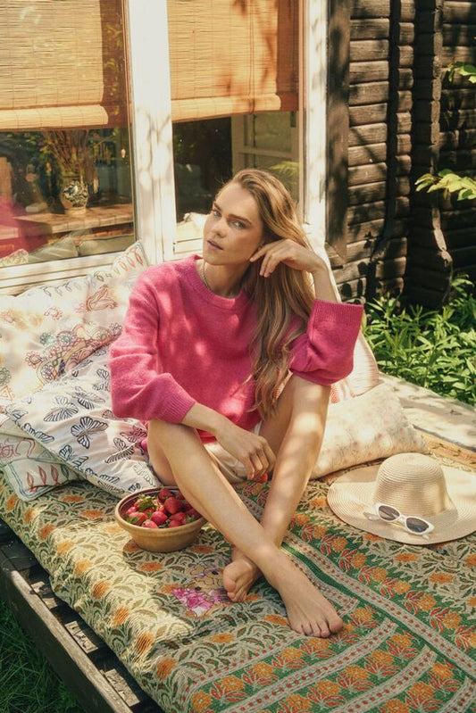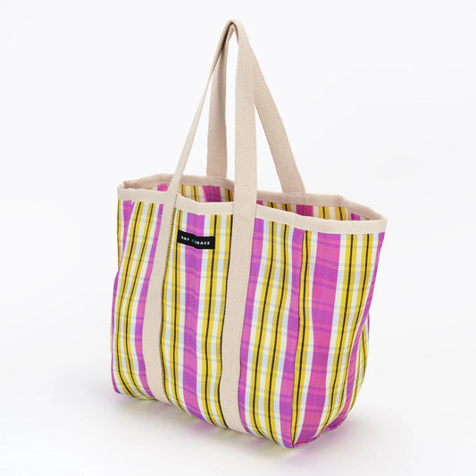 Large Recycled Plastic Yellow & Pink Stripe Shopper
