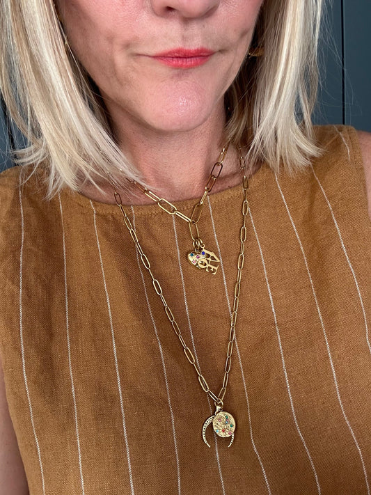 Long Moon & Stars Necklace - Gold Plated