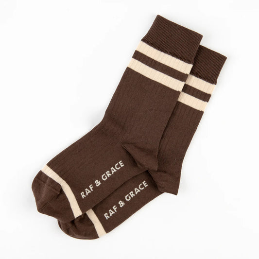 Luxe Cotton Ribbed Socks - Ecru & Coffee Brown