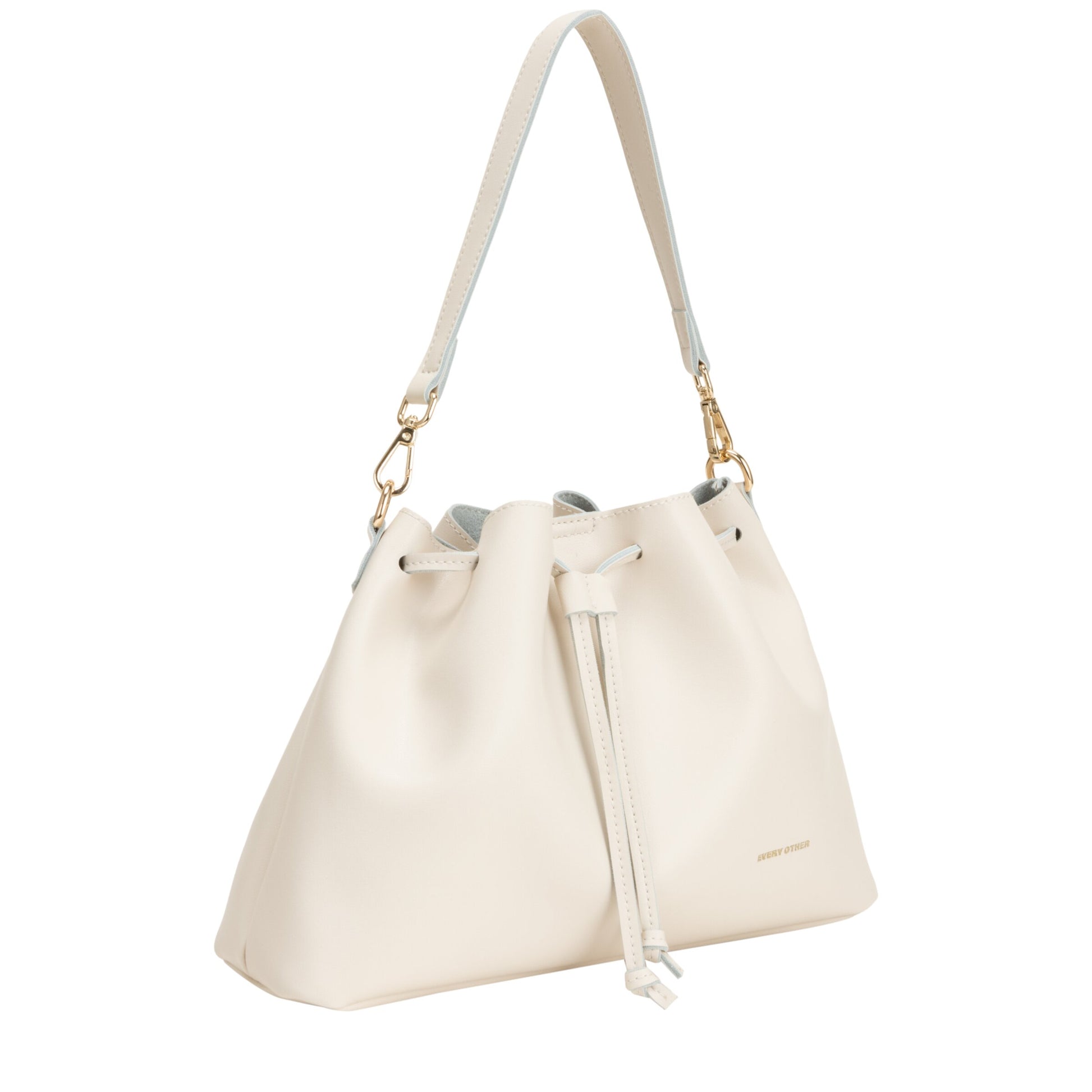 This versatile drawstring shoulder crossbody bag in off white blends convenience and style effortlessly. Designed with both a drawstring closure and an adjustable shoulder strap, it offers flexible carrying options for your busy day. Lightweight yet spacious enough for essentials, its clean, neutral shade complements any outfit, making it a must-have accessory for hands-free comfort and chic simplicity.