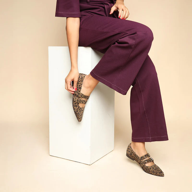 The Harper Leopard puts a playful spin on the Hope Leopard, now with a bold animal print suede closed back. Its chunky double straps provide an adjustable, comfy fit for high arches, while the pointed toe adds a stylish, edgy touch. Ideal for anyone who loves fun and fashionable footwear.
