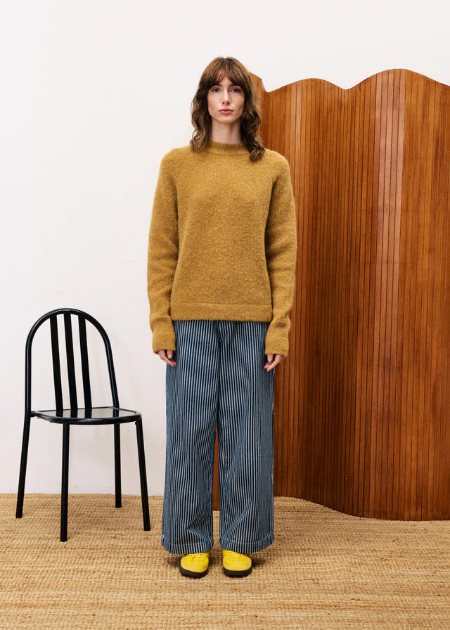 Discover the Jean Bleuet – Blue Jeans, crafted from exclusive FRNCH fabric for a unique feel and durability. Designed with contrasting stitching, these pants feature two front and two back pockets for convenience. The button and zipper closure, along with belt loops, ensure a secure and comfortable fit. Perfect for adding a stylish edge to your wardrobe, these jeans combine practicality with standout details to elevate your everyday look.