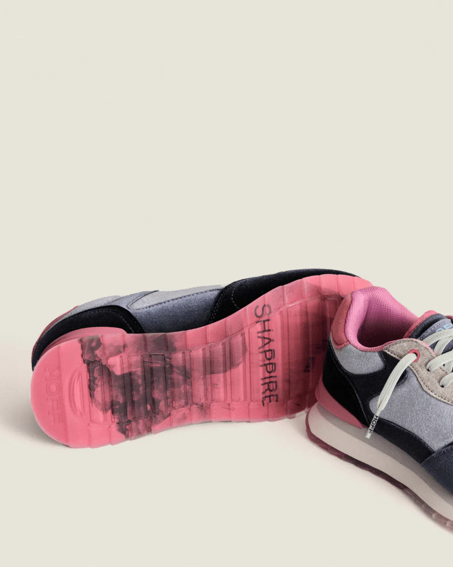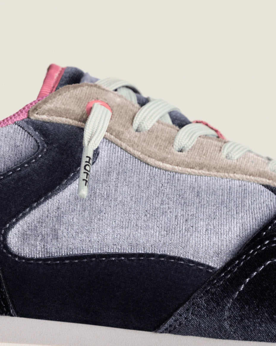 Experience urban elegance with the HOFF Shapphire Trainer, where luxury meets everyday wear. Featuring soft velvet panels in a refined dark, dusty palette, these trainers combine classic lace fastenings with a memory foam insole for exceptional comfort. The subtle cityscape graphic on the pink-tinted outsoles adds a unique, contemporary touch, perfect for stylish city-side adventures.