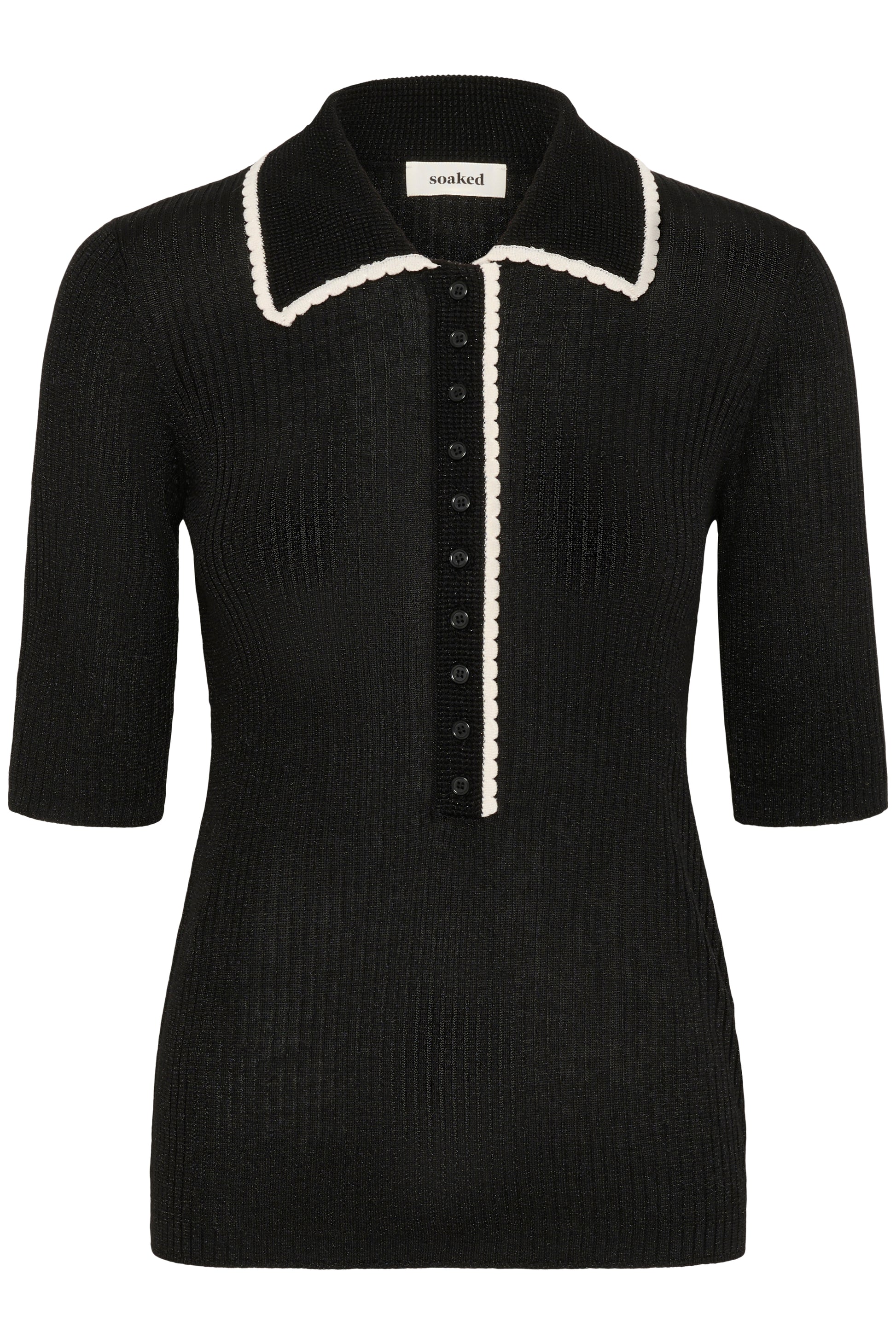 The SLLaisa Polo Pullover in Black features crisp white detailing for a striking contrast. This polished piece offers refined comfort with its classic polo design, perfect for a sophisticated yet effortless look that transitions seamlessly from day to evening wear.