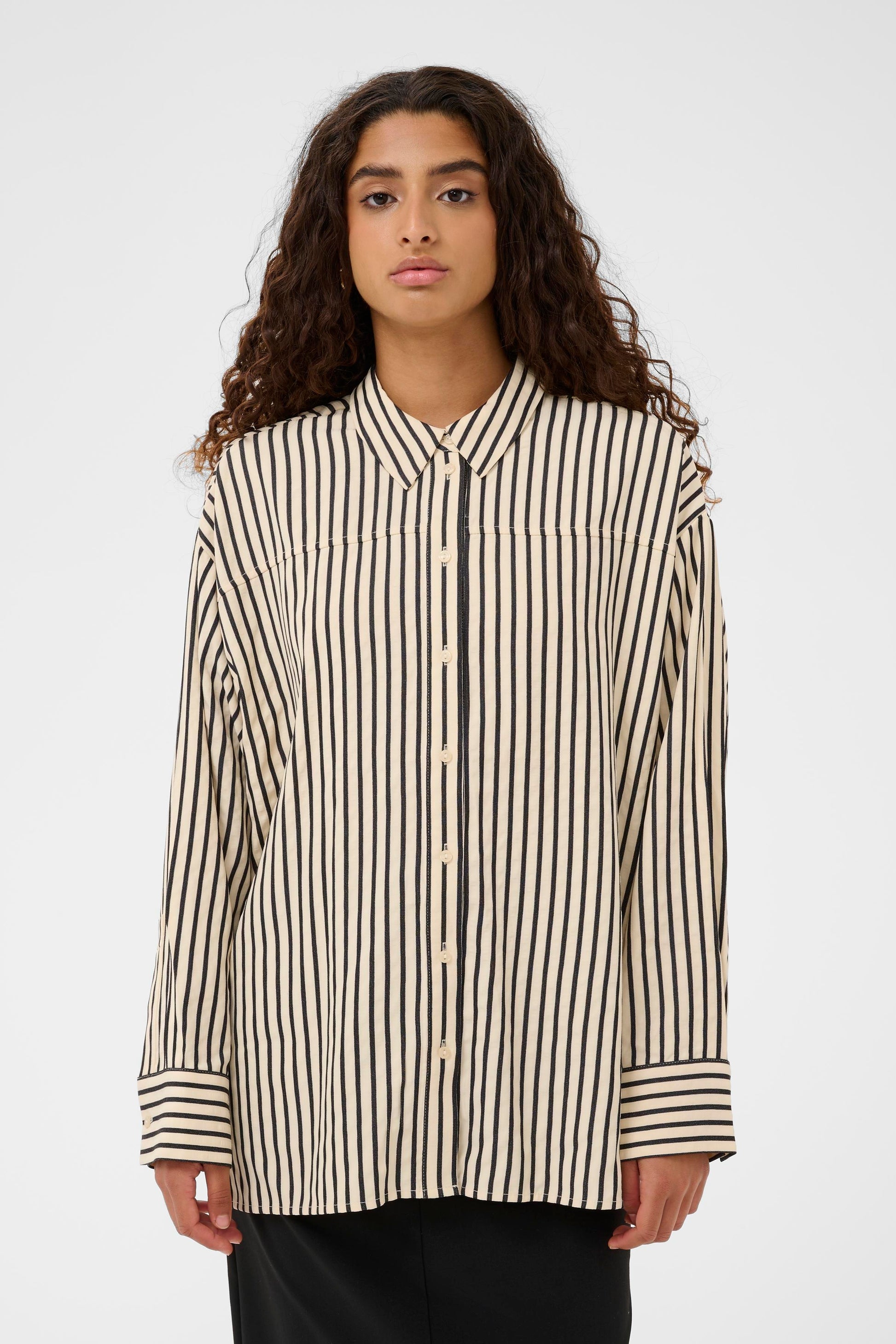 SLOrlena Long Sleeved Shirt - White and Black Stripe