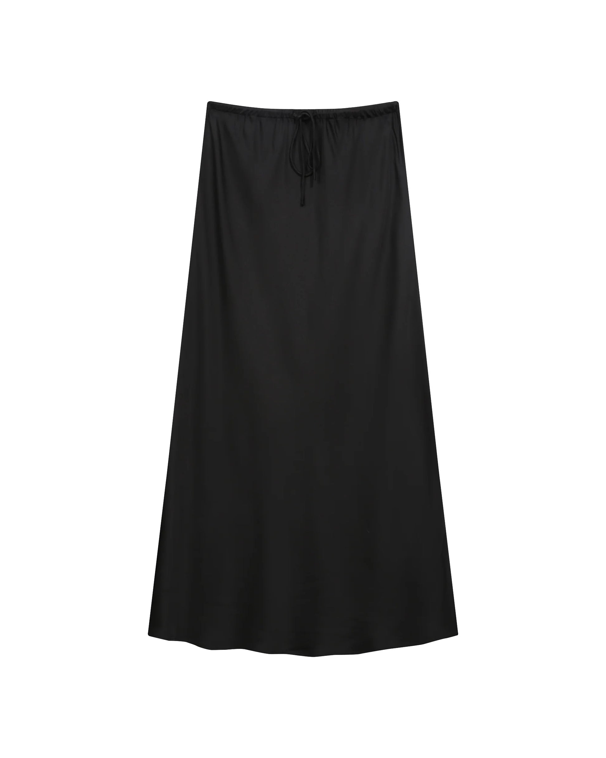 The trapeze cut and mid-high waist flatter and suit every woman's curves. The TALMAS satin skirt has an adjustable waist with a front drawstring for added comfort.